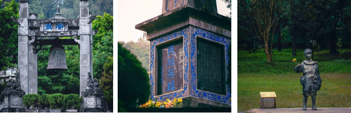 步入墓园,庄严肃穆之感油然而生。忠烈祠、纪念塔巍然屹立,无声地诉说着那场收复腾冲的惨烈战役。最令人动容的是山坡上整齐