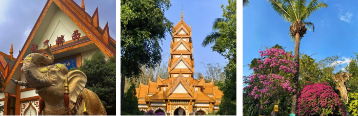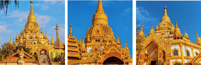 浓郁的南传佛教氛围。登临塔周,您可以俯瞰整个芒市坝子的绝美风光,将城市与田园尽收眼底,心境也随之豁然开朗。尤其在日落