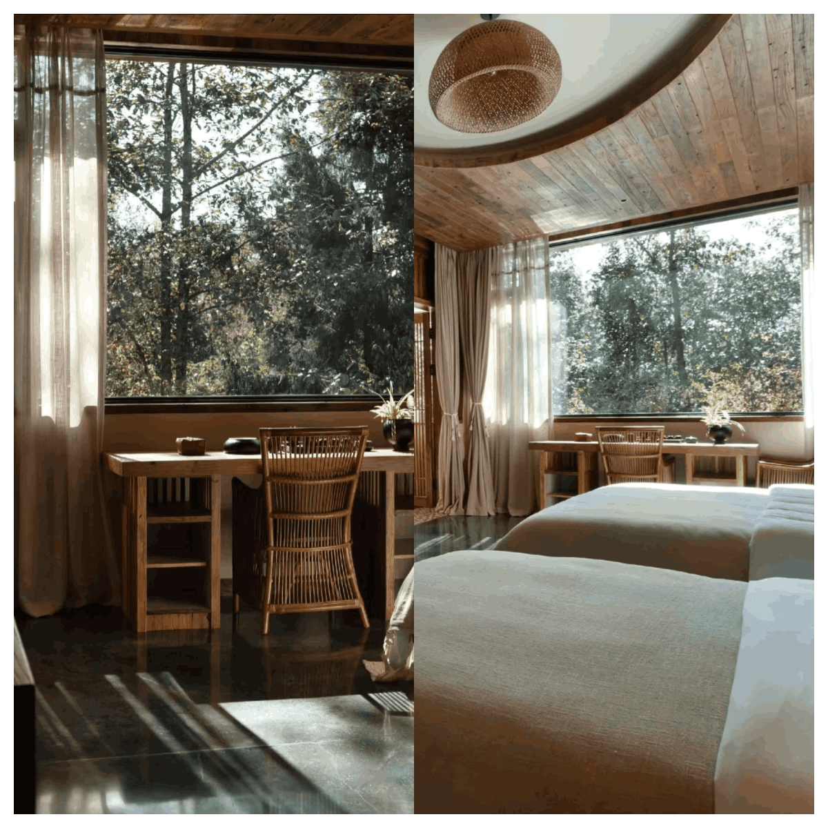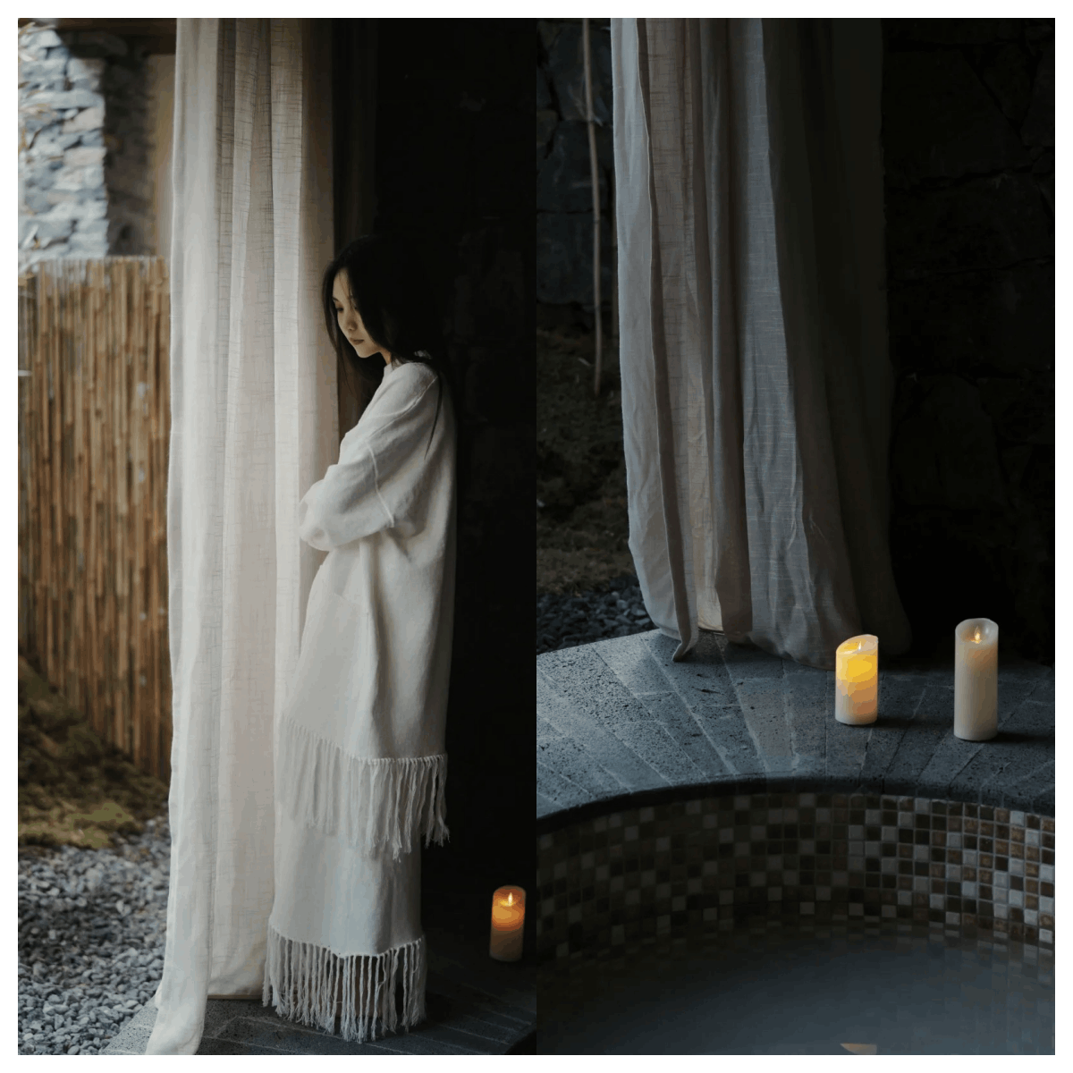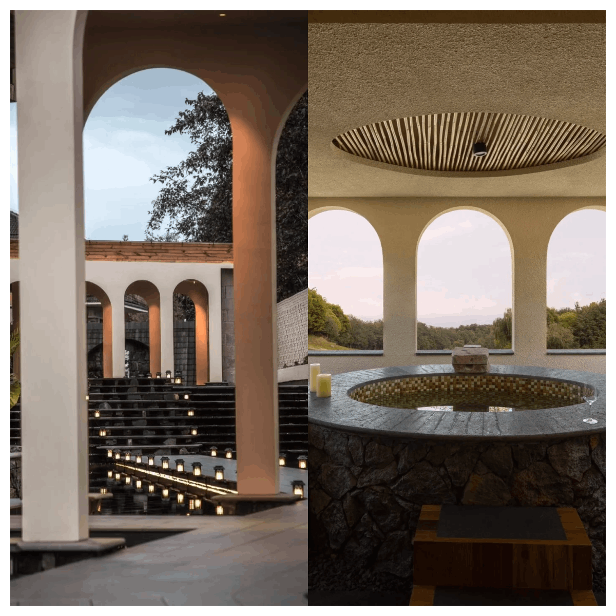 藏于山林秘境中,被茂密植被环抱,推窗即是满眼绿意与清新负氧离子。主打温泉与森系融合,私汤引入天然温泉水,泡汤时可听虫鸣鸟叫,沉浸式拥抱自然。