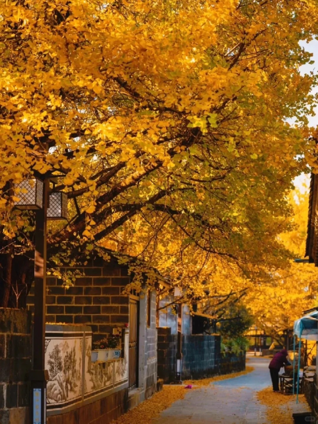 下午:漫步主巷道与小院,欣赏金黄的银杏叶,随意走进一家小院拍照都非常出片。拍摄点推荐林间栈道、古寺遗址、高处观景台等。傍晚返程前,还可以拍摄一场温柔的落日。