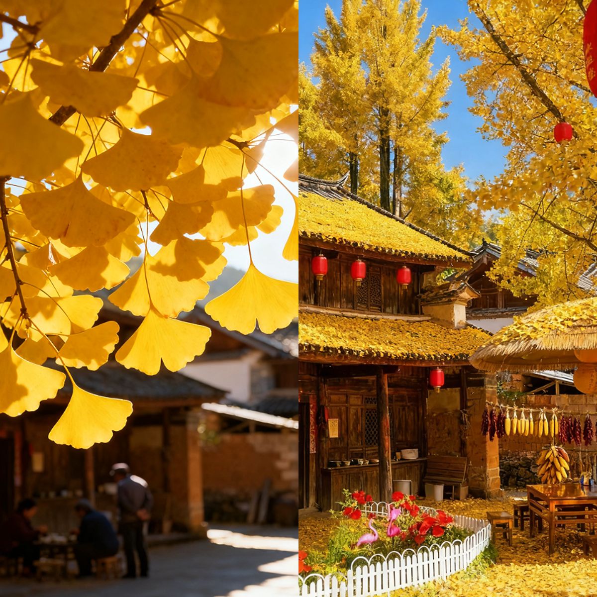 清晨的腾冲带着微凉雾气,第一站直奔固东银杏村—— 这个藏在滇西群山里的村落,拥有 3000 多株百年以上古银杏,每年 11 月至 12 月,黄叶满枝、落英缤纷,宛如闯入金色梦境。不同于走马观花的打卡,深度玩法更懂捕捉村落灵魂:沿着青石板路穿行在古朴民居间,看阳光透过枝叶洒下斑驳金影,墙角的南瓜、晾晒的谷物与金黄银杏相映成趣,随手一拍都是治愈系大片。驻足百年银杏王下,听村民讲述古村故事,或是走进农家小院,点一份银杏炖鸡、炒银杏果,在烟火气中品味秋冬的温润。别忘了钻进村落深处的小众巷道,避开人群,独享整片银杏林的静谧,让落叶沾满肩头,定格专属的秋日浪漫。